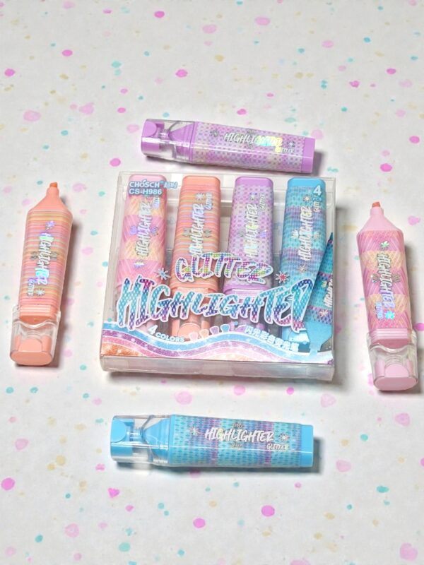 Set de 4 Marcatextos con Brillo (Glitter) – Colección Pastel Galaxy