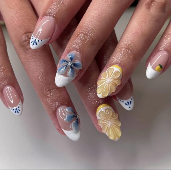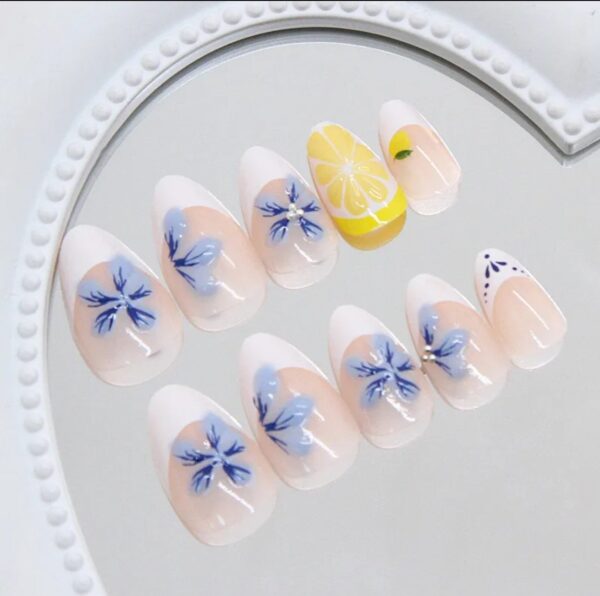 Set de Uñas Reutilizables con 24 piezas Tonos Azul y Amarillo