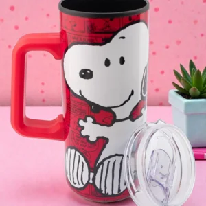 Disfruta tus bebidas favoritas con estilo y diversión con este tarro de acero inoxidable de doble pared inspirado en Snoopy. Su diseño térmico ayuda a mantener la temperatura de bebidas calientes o frías por más tiempo, mientras que el asa brinda un agarre cómodo y seguro.
