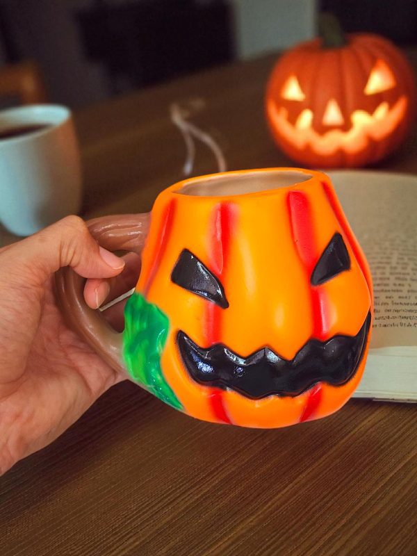 Taza de Ceramica Calabaza con Agarradera en Forma de Tallo