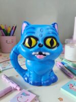 Diseño 3D Detallado: La taza está modelada siguiendo la silueta del personaje, resaltando sus grandes ojos amarillos, colmillos y su característica lengua rosada.