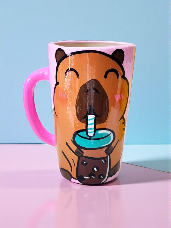 Taza de Ceramica Jumbo Artesanal Pintada a Mano Capibara Boba
