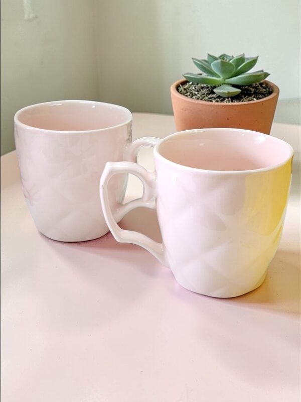 Taza de Porcelana Rosa Pastel Relieve Rombos